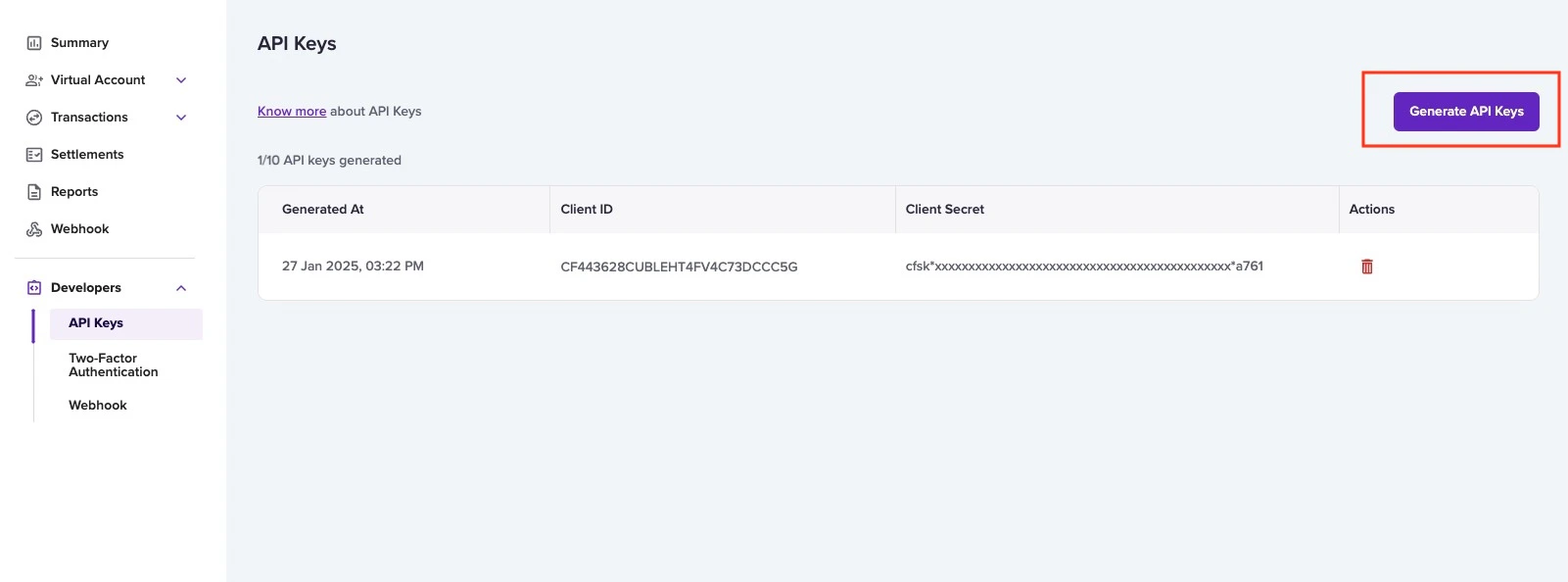 | Get Collection Accounts | This API fetches all the virtual accounts that are linked with this account. |