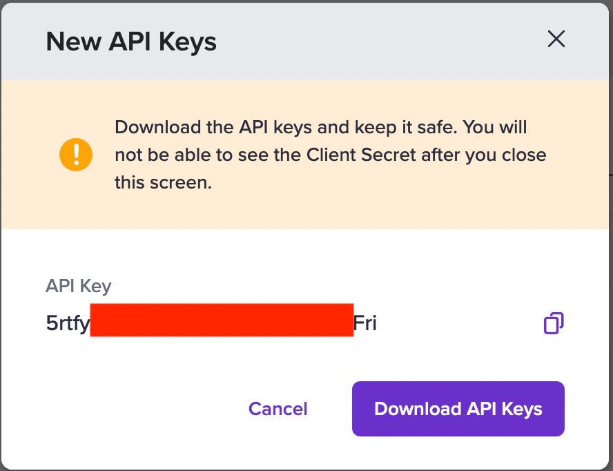 1. Copy and download the API keys for all API requests and future reference.