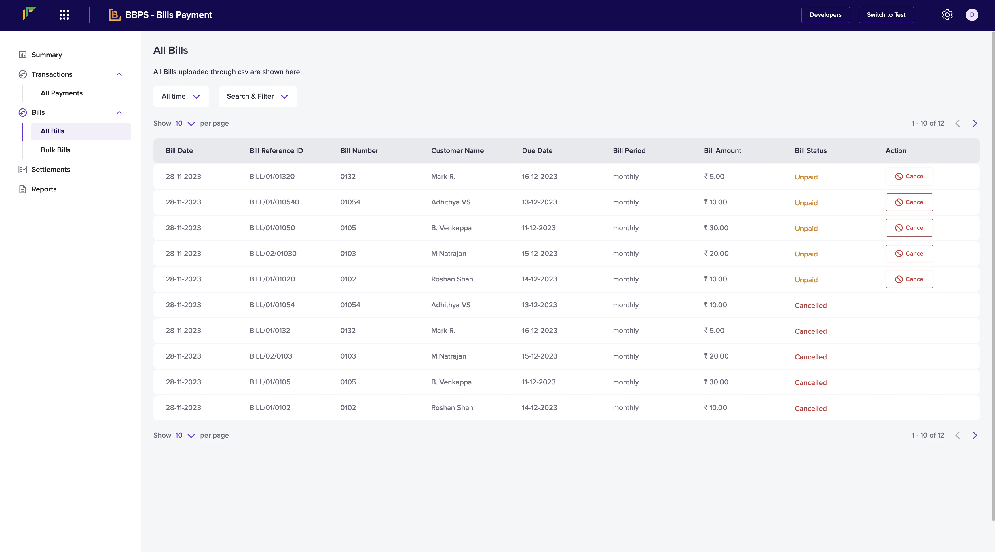 - Bill Reference ID - Unique identifier of the bill generated by the merchant/biller.