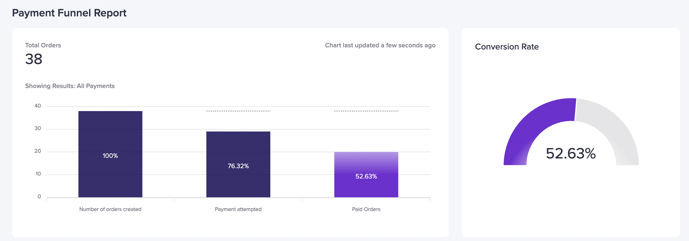 Success Rate shows the percentage of successful transactions. Tracking SR helps you spot payment issues and create a smoother checkout.Transaction Analytics