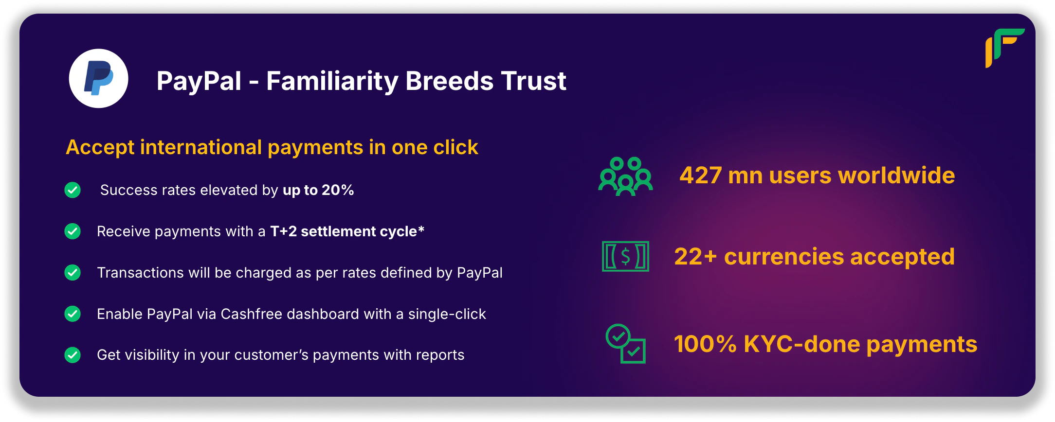 Accept international payments in one click via PayPal, worldās leading wallet payments provider