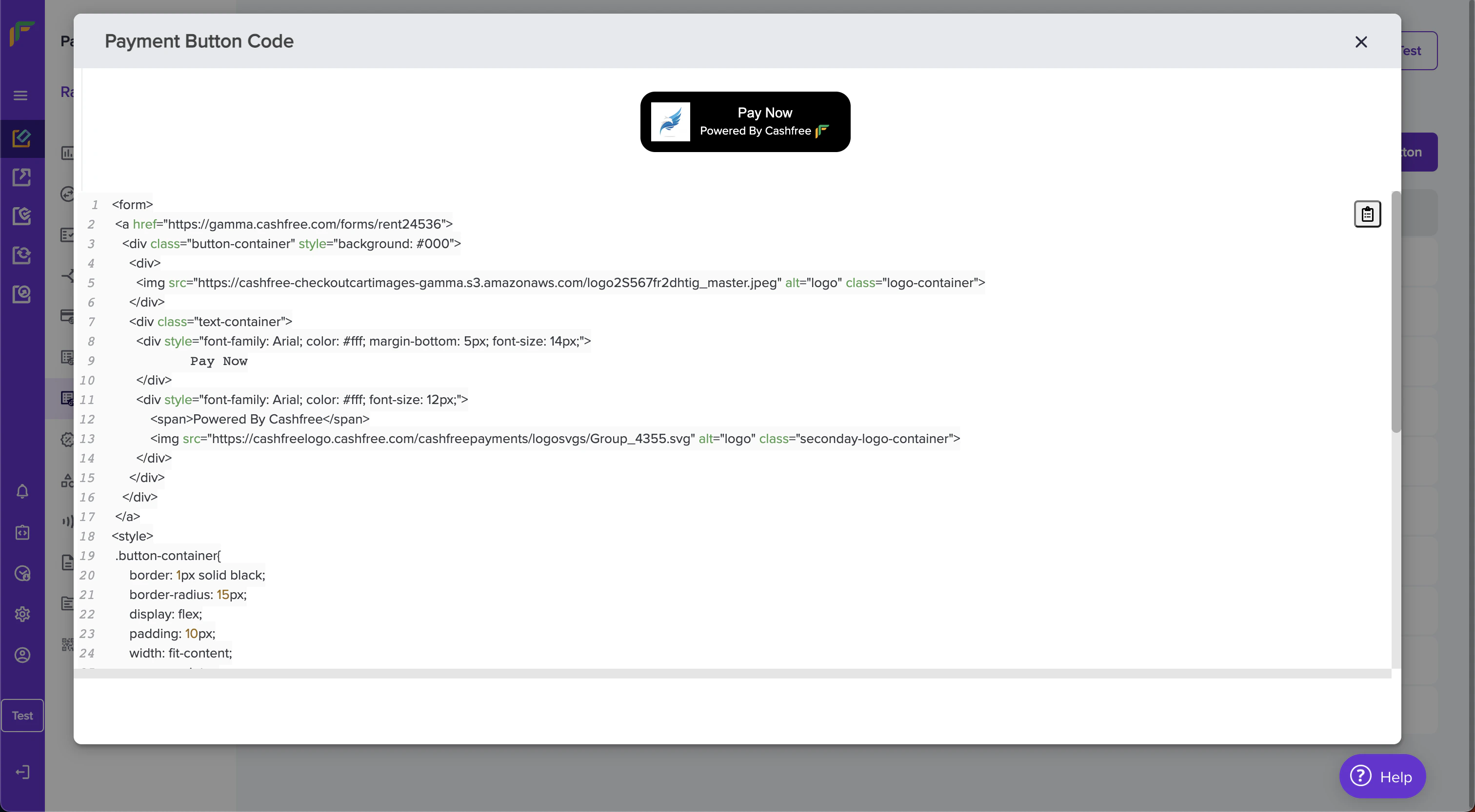 5. Form Code can be found against a Payment Form in the Payment Form dashboard. Use the Form code to link to the Payment button.