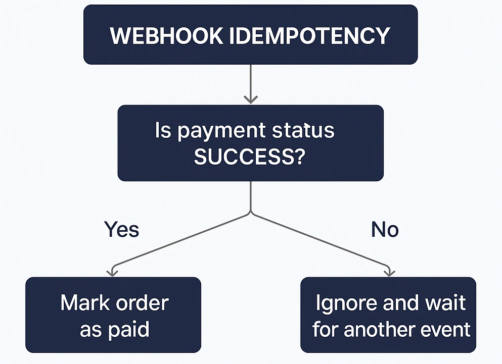 Implement logic to update the order status only upon receiving theSUCCESSwebhook. -