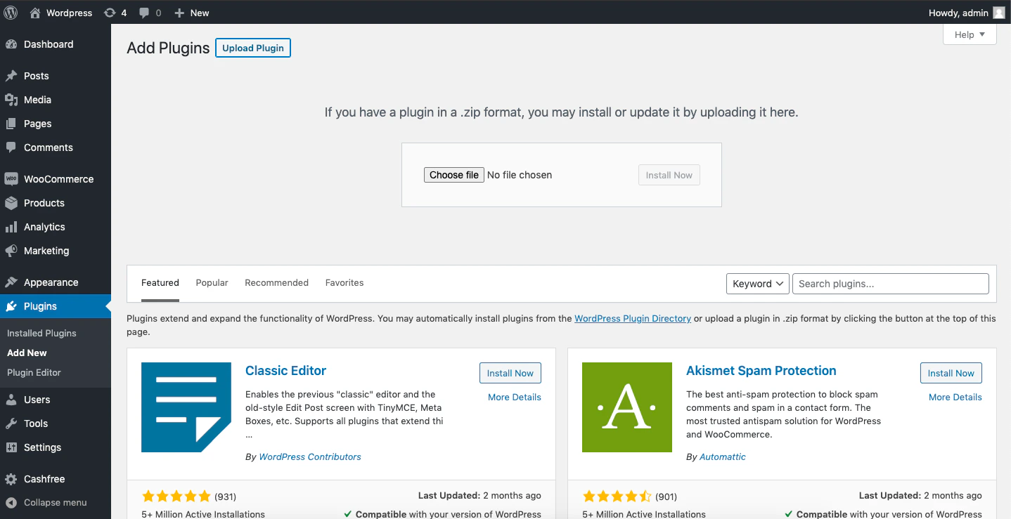 2. Go to your WordPress site > Plugins > Add New.