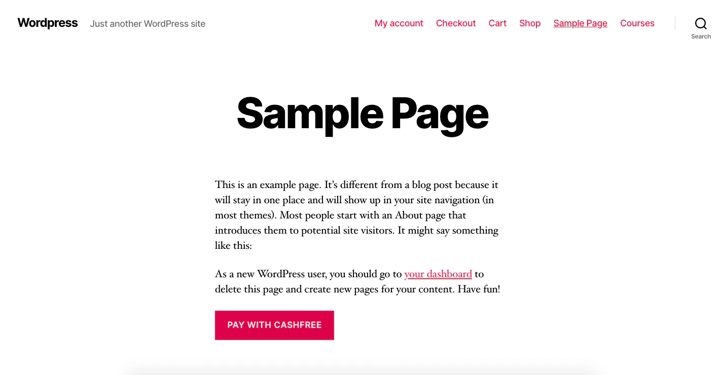 1. Publish the page to see the Pay with Cashfree button. Customers can complete the payment by clicking the button on the page.