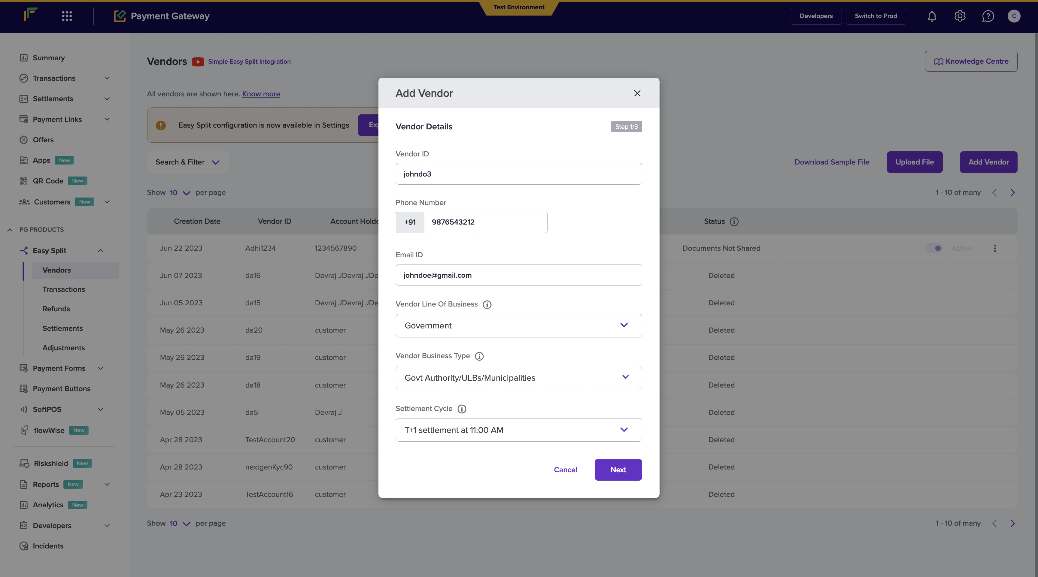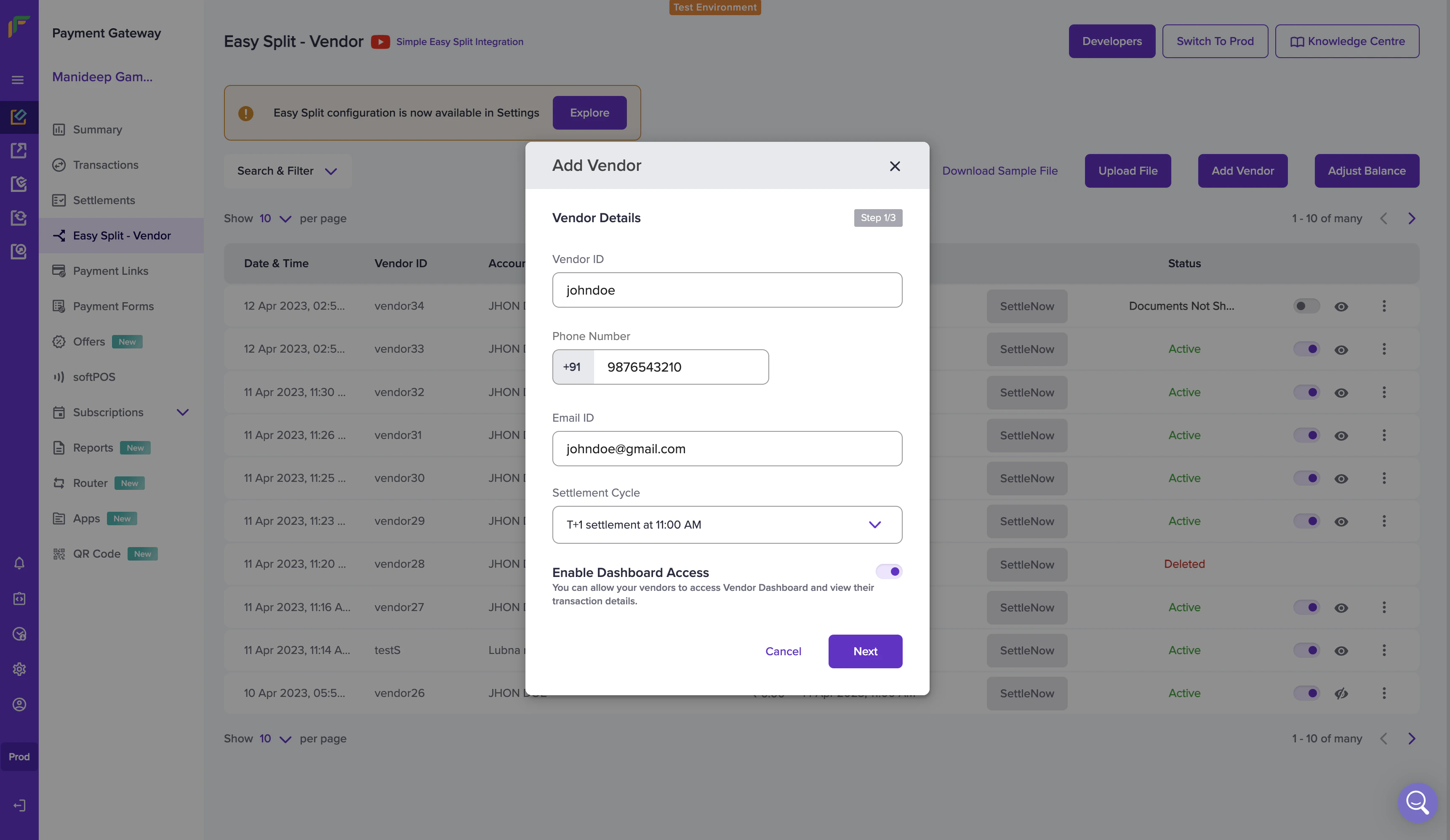 - Go to Payment Gateway Dashboard > Easy Split - Vendor > Add Vendor.