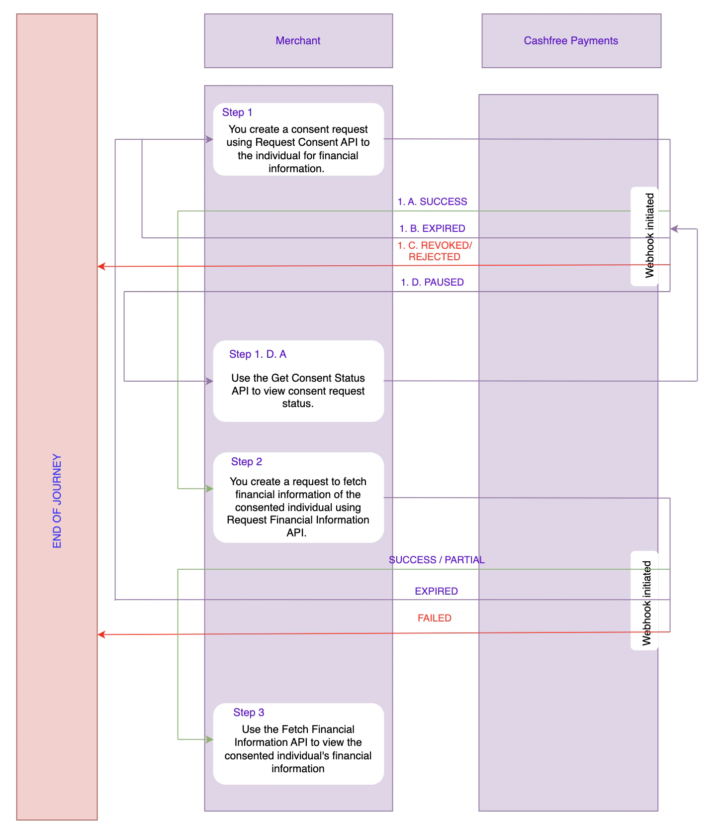 1. Consent Request: The Account Aggregator APIs first request user consent to access their financial data from Financial Information Providers (FIPs).